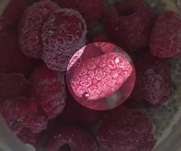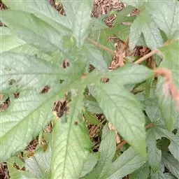 覆盆子的第二种病害叫白粉病。树莓感病叶覆有一层白色粉状物,从而引起叶片扭曲变形或变卷缩;有时叶片并不显现白色粉状物,而表现叶片有水浸状斑点。严重时新梢生长矮化,果实有时也受侵染。