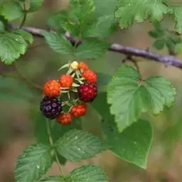 覆盆子为喜光树种,没有2年半以上的茎,地上部分由1年生枝和2年生枝组成。花芽在新梢叶腋中形成,下面的后备芽发枝较弱,在主芽死后,后备芽可代替主芽结果,但后备芽的产量少。覆盆子的根系发达,由根状茎和侧生根组成,根状茎上长出的侧生不定根有多数,不定根的远端易萌生新的基生枝。