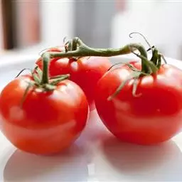 番茄,即西红柿(学名:Lycopersicon esculentum Mill.),是管状花目、茄科、番茄属的一种一年生或多年生草本植物,体高0.6-2米,全体生粘质腺毛,有强烈气味,茎易倒伏,叶羽状复叶或羽状深裂,花序总梗长2-5厘米,常3-7朵花,花萼辐状,花冠辐状,浆果扁球状或近球状,肉质而多汁液,种子黄色,花果期夏秋季。