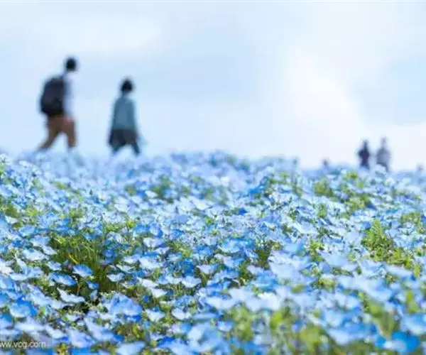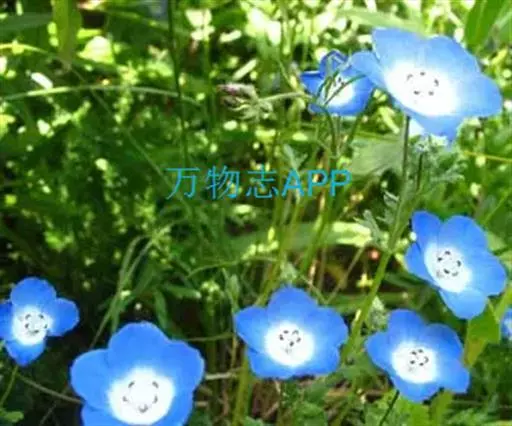 喜林草,Nemophila menziesii,是加利福尼亚一种通常野花。花色有红、黄、橙黄和蓝、白相间,亦有带紫色斑点者。