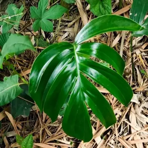 龟背竹属 攀援灌木。叶密,二列。叶柄具鞘,一叶片异向旋转。幼株的叶常小,卵形或卵状心形,具短柄,叶片紧贴茎上。成熟植株叶片各式,全缘,大都长圆形,不等侧,有时具空洞,稀羽状分裂;叶柄上叶鞘达中部或中部以上,宿存或撕裂为麻屑状,或全部脱落。