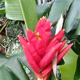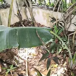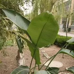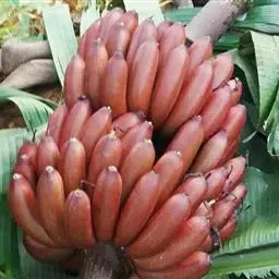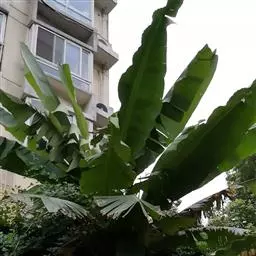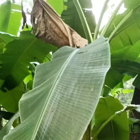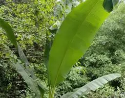 红蕉,假茎高1-2米。叶片长圆形,长1.8-2.2米,宽68-80厘米,叶面黄绿色,叶背淡黄绿色,…