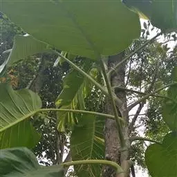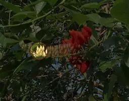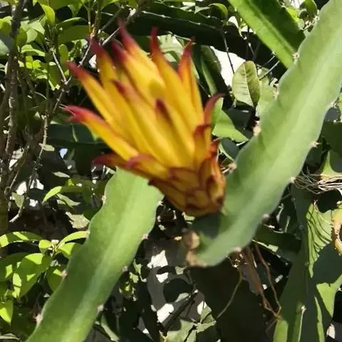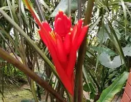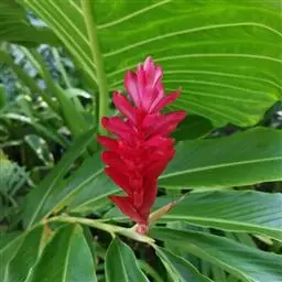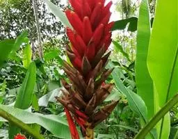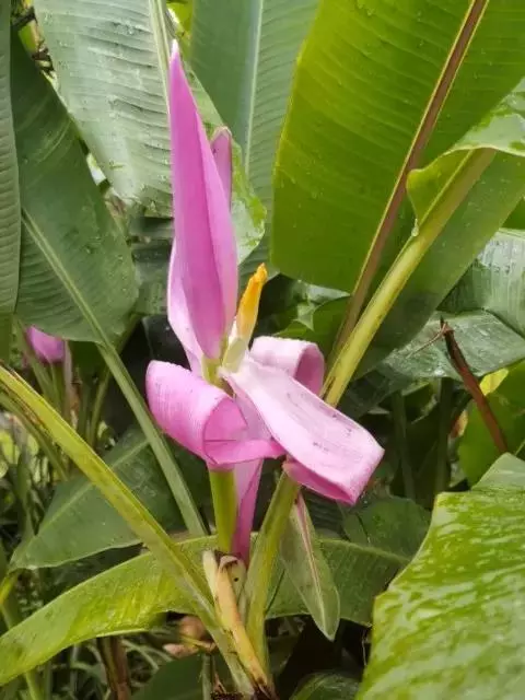 紫苞芭蕉形如一枝亭亭玉立、含苞待放的荷花,但却开在高高的芭蕉树上,这就是紫苞芭蕉。