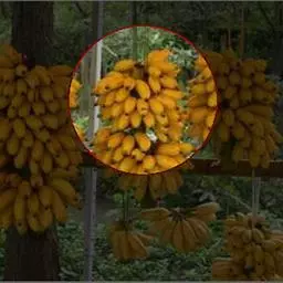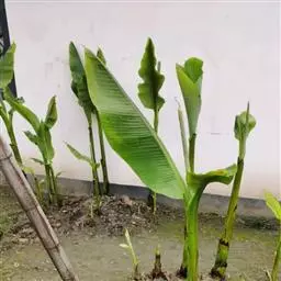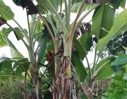 香蕉’),芭蕉科芭蕉属多年生草本植物,植株丛生,有匐匍茎;假茎浓绿有黑色斑点;叶片长圆形,…