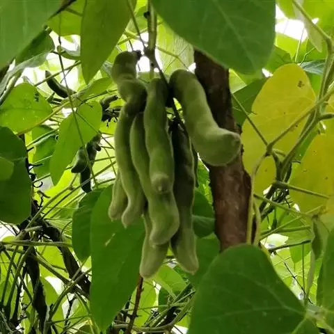 黧豆 Baker ex Burck)是豆科油麻藤属的一年生缠绕藤本植物。枝略被开展的疏柔毛;羽状复叶,…