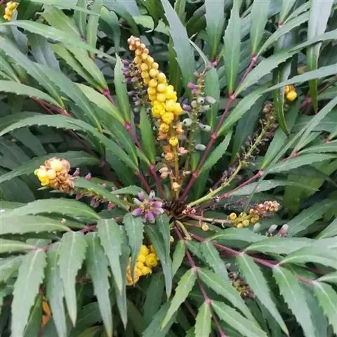 十大功劳枝干酷似南天竹,栽在房屋后,白粉墙感觉调和,庭院,园林围墙作为基础种植,颇为美观。在园林中可植为绿篱、果园、菜园、的四角作为境界林,还可盆栽放在门厅入口处,会议室、招待所、会议厅、使人清幽可爱,作为切花更为独特。