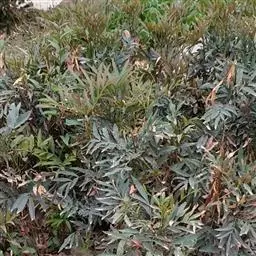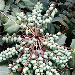 十大功劳(图4) 野生的十大功劳越来越少,在园林苗圃生产中大量繁殖苗木时采用此法。十大功劳播种育苗主要是把握好采种时间、种子处理方法、播种覆土厚度和播后的精心管理。可于5月待其果实成熟时,采下卵形浆果,稍加堆放后,与细沙混合搓揉,或用温水浸种,漂洗去果皮、果肉及空瘪的种粒,然后捞出饱满种粒,阴干后放在布袋中,挂在阴凉通风的干燥处贮藏,入冬后将种子低温沙藏至翌春,3月播下,播后覆土1-2cm,洇透水后放在半阴处,约1个月发芽。