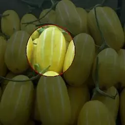甜瓜(Cucumis melo L.)又称香瓜、哈密瓜等。是葫芦科一年生蔓性草本植物。茎、枝有棱。卷须纤细,单一,被微柔毛。叶柄长具槽沟及短刚毛;叶片厚纸质,上面粗糙,被白色糙硬毛。花单性,雌雄同株。雄花:数朵簇生于叶腋;花梗纤细;花冠黄色;雌花:单生,花梗粗糙,被柔毛;子房长椭圆形。果实的形状、颜色因品种而异,通常为球形或长椭圆形,果皮平滑,有纵沟纹,或斑纹,果肉白色、黄色或绿色,有香甜味;种子污白色或黄白色,卵形或长圆形,先端尖,表面光滑。花果期夏季。