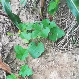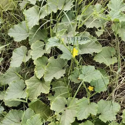 一年生匍匐或攀援草本;茎、枝有棱,有黄褐色或白色的糙硬毛和疣状突起。卷须纤细,单一,被微柔毛。叶柄长8-12厘米,具槽沟及短刚毛;叶片厚纸质,近圆形或肾形,长、宽均8-15厘米,上面粗糙,被白色糙硬毛,背面沿脉密被糙硬毛,边缘不分裂或3-7浅裂,裂片先端圆钝,有锯齿,基部截形或具半圆形的弯缺,具掌状脉。