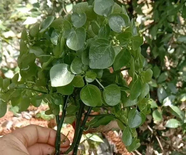 茎粗状,高25-40厘米,粗3-5毫米,多分枝,小枝以50-60角度呈伞房状整齐伸出。叶先端钝或近圆形,边缘全缘,两面密布钟乳体。雄花序长不过叶柄;雄花花被片外面近先端有2个囊状突起。花期9-11月,果期11月。