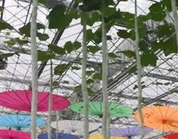 黄瓜是葫芦科黄瓜属一年生攀援草本植物,茎部细长和糙硬毛;叶片呈宽卵状心形或裂片三角形;花呈微柔毛黄白色;果实长圆形或圆柱形熟时黄绿色;种子呈狭卵形白色;花果期为夏季。黄瓜原产喜马拉雅山南麓的印度北部地区,现分布于全世界,喜温暖、不耐寒冷、喜潮湿、不耐旱、强光照,黄瓜要求土层深厚,土质肥沃,有机质丰富,通气性良好,微酸至中性土。 黄瓜风味独特、质地脆嫩、含水量高、营养丰富、容易消化,主要作为鲜食、熟食、腌制等食材,是全球十大蔬菜之一。