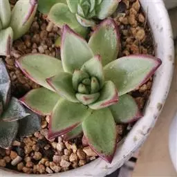 红稚莲(Echeveria ‘Minibelle’ )是景天科拟石莲花属的多肉植物。杂交种。喜温暖、干燥、通风、阳光充足的环境,耐旱,不耐荫或高温潮湿,无明显休眠期。可通过叶片或枝干扦插进行繁殖。