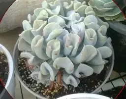 多年生植株可形成群生小灌木。莲座直径可达9厘米。茎直立。叶片排列松散;广卵形至散三角卵形;一般灰绿色,在阳光强、温差大的环境下,边缘和先端可呈现红晕;长达4厘米,宽达1.5厘米。花序长约26厘米。