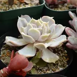 红稚莲的繁殖一般是砍头爆小崽扦插和叶插,砍下来的植株可以直接扦插在干的颗粒土中,发根后就可以少量给水了。是个非常好养的品种,叶插法是取完整饱满的叶子,放在阴凉处晾干伤口,然后放置在微湿的土上,它会慢慢长根后发芽,过程有点长。砍头后的植株可从生长点周围长出若干侧芽,侧芽长大后可切下扦插。