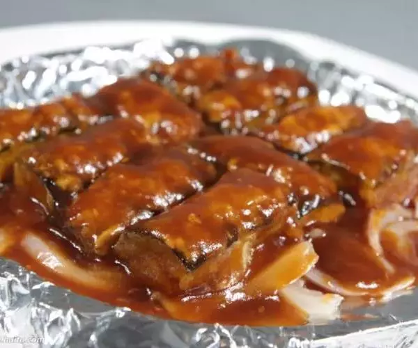 13. 将炸好的茄子铺在锡纸上;