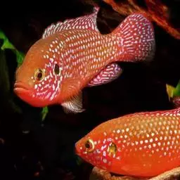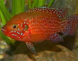 红宝石鱼是鲈行目慈鲷科伴丽鱼属 鱼类,又名红花鲈、宝石鱼。个体较大,身长12—15厘米。背鳍宽大,…