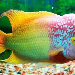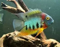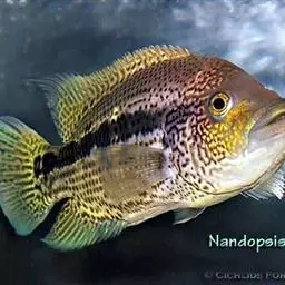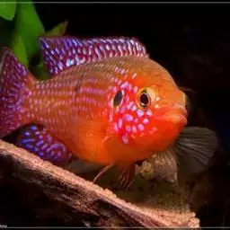 眼点丽鱼又称皇冠三间、孔雀鲈,为鲈形目,慈鲷科,丽鱼属一种淡水鱼类。…