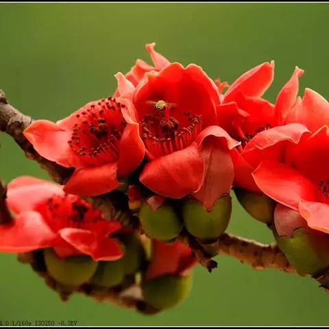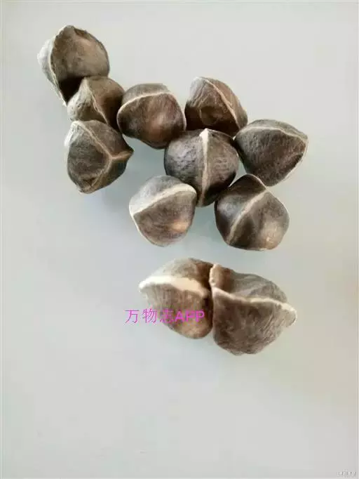 胖大海 落叶乔木,高可达40m,单叶互生,叶片革质,卵形或椭圆状披针形,长10~20cm,宽6~12cm,通常3裂,全缘,光滑无毛。圆锥花序顶生或腋生,花杂性同株;花萼钟状,深裂;雄花具10~15个雄蕊;雌花具1枚雌蕊。骨朵果1~5个,着生于果梗,呈船形,长可达24cm。种子棱形或倒卵形,深褐色和土黄色。