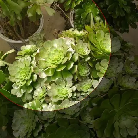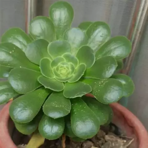 红缘莲花掌(Aeonium haworthi kwebb et Berth)属蔷薇目、景天科植物,原产大西洋的加那利群岛。质厚,蓝绿色,被白霜,叶缘红褐色。聚伞花序,花浅黄色,有时带红晕。