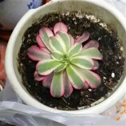 红缘莲花掌属蔷薇目、景天科植物,原产大西洋的加那利群岛。质厚,蓝绿色,被白霜,叶缘红褐色。聚伞花序,…