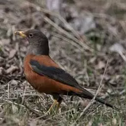 灰头鸫:中型鸟类,体长23-27厘米。整个头、颈和上胸褐灰色,两翅和尾黑色,上、下体羽栗棕色。…