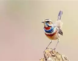 红尾歌鸲:体长13-15厘米。上体橄榄褐色。尾羽棕栗色,眼先和颊黄褐色,眼周淡黄褐色。…