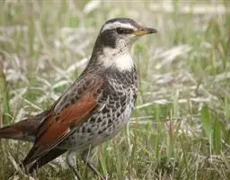 白眉歌鸫,是雀形目鸫科鸫属鸟类。体型略小并具有褐色斑点的歌鸫,上体橄榄褐色,眉纹白色,脸部斑驳,…