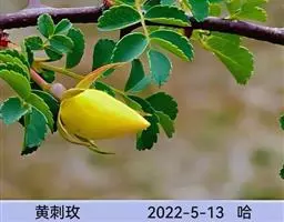 黄刺玫是蔷薇科蔷薇属的直立灌木。高2-3米;枝粗壮,密集;小叶片呈宽卵形或近圆形,边缘有圆钝锯齿,…