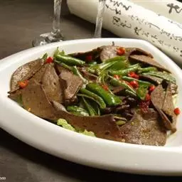 土匪猪肝,又叫湘西土匪猪肝,是湘西地区的一道特色菜品。它是将沸水焯过的猪肝加配料爆炒而成的具有湘西…