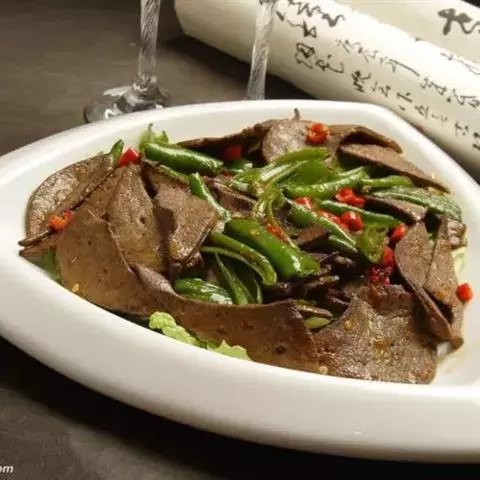 炒猪肝,家常菜。猪肝中铁质丰富,是补血食品中最常用的食物,贫血患者经常食用,不但开胃口,…