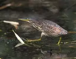 棕夜鹭是一种中型涉禽,身长56-66 cm。这是一个矮胖的鹭。黑色头冠,腿爪是明亮的黄肉桂色。…