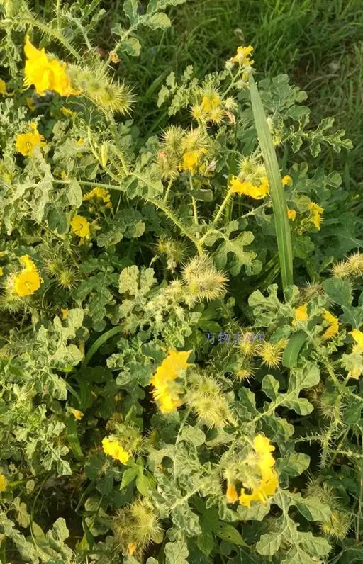 黄花刺茄在国家标准中又叫刺萼龙葵,为茄科茄属一年生草本植物。原产于北美,别称刺萼龙葵。常生长于开阔的、受干扰的生境,如田野、河岸、过度放牧的牧场、庭院、谷仓前、畜栏、路边、垃圾场等地。原产新热带区北美洲和美国西南部,除佛罗里达州已经遍布美国,并且已分布到加拿大、墨西哥、俄罗斯、韩国、南非、澳大利亚等国家或地区。