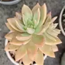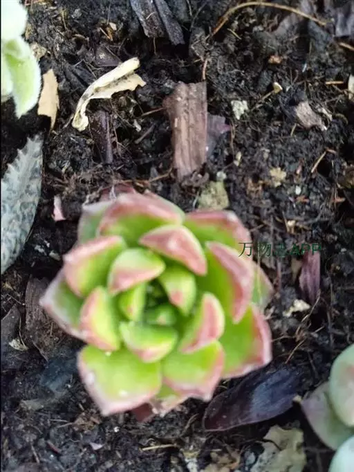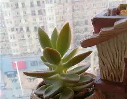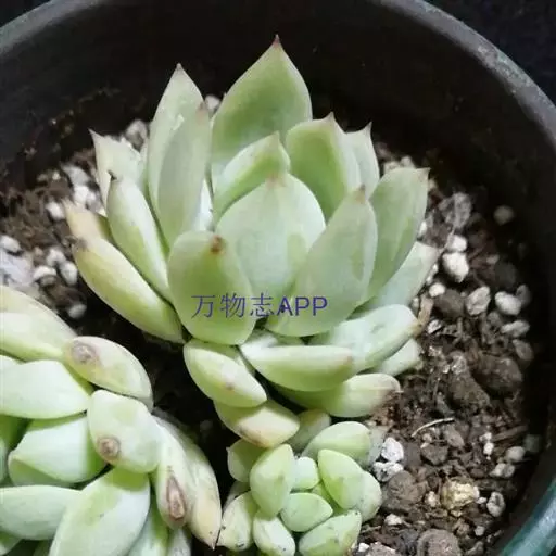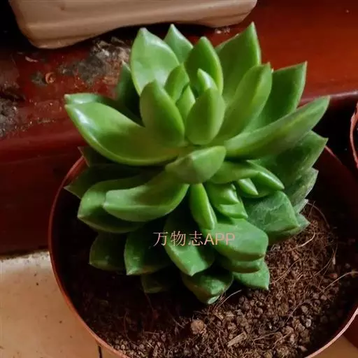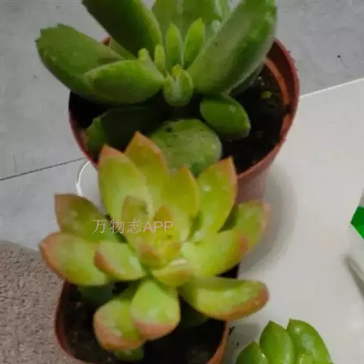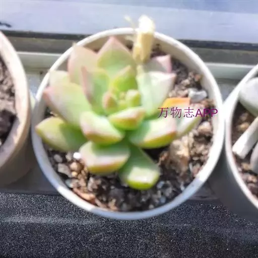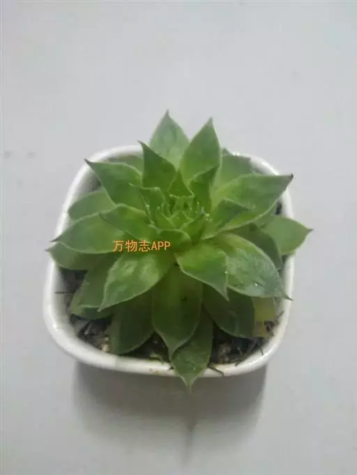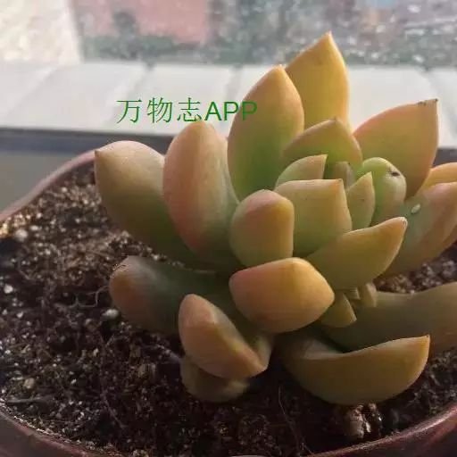 黄丽,多肉类植物,植株具短茎,肉质叶,排列紧密,呈莲座状,叶片匙形,顶端有小尖头,叶片松散。