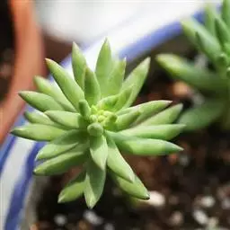 铭月是景天科景天属的多年生亚灌木。多分枝,茎蔓生或直立,高约10-30厘米。…