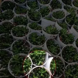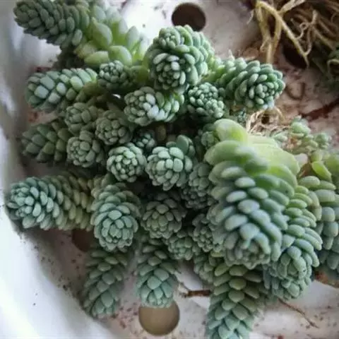 玉米石是景天科、景天属植物。多年生草本多浆植物。植株低矮丛生,多分枝。叶膨大成圆筒形、卵形或近小球形,…