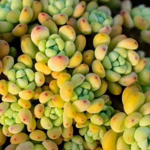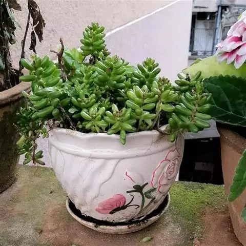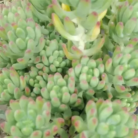 玉米石是景天科、景天属植物。多年生草本多浆植物。植株低矮丛生,多分枝。叶膨大成圆筒形、卵形或近小球形,…
