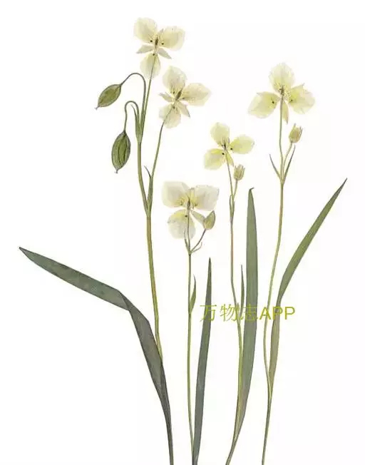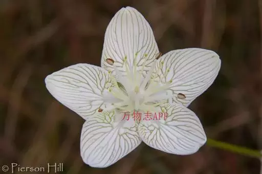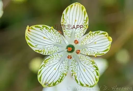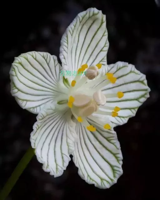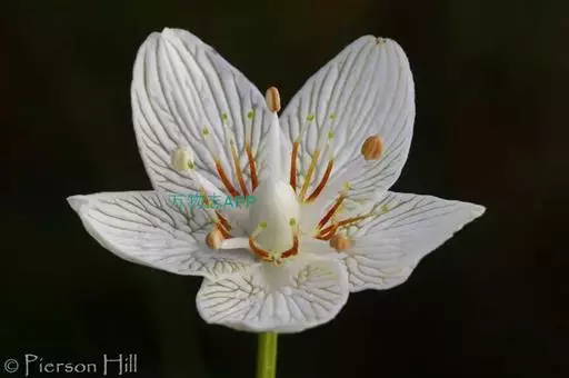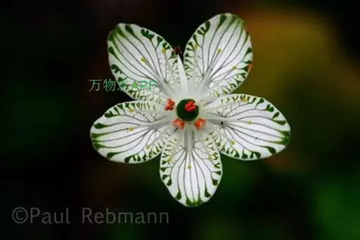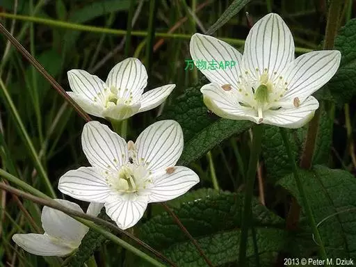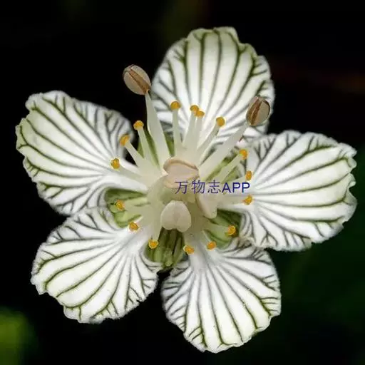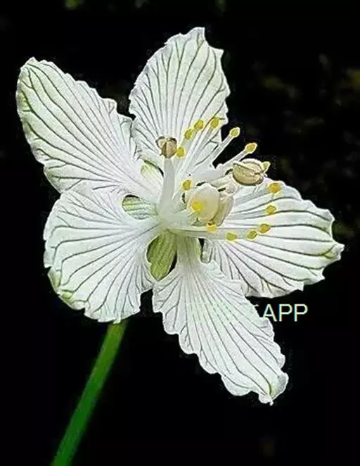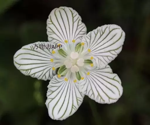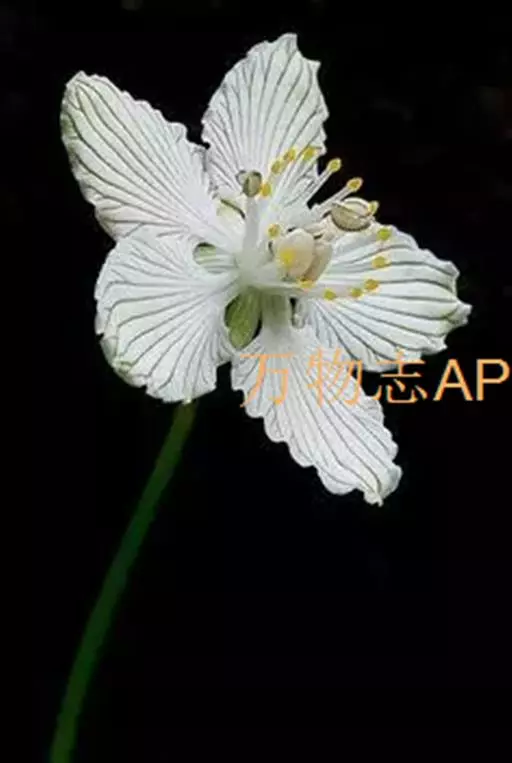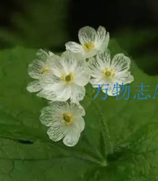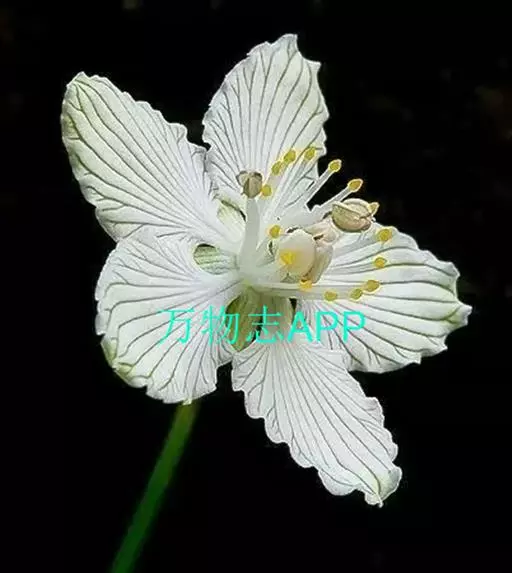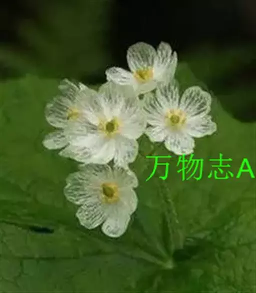 多年生草本,高达30-50cm。全株无毛。根茎短,近球形。基生叶丛生;叶柄长2.5-6cm;叶片卵圆形至心形,长1-3cm,宽1.5-3.5cm,先端钝圆或锐尖,基部心形,全缘,花茎中部生1无柄叶片,基部抱茎,与基生叶同形。花单生顶端,白色至浅黄色,直径2-3.5cm,形似梅花;萼片5,椭圆形,长约5mm;花瓣5,平展,卵状圆形,长约1cm,先端圆;雄蕊5,与花瓣互生;假雄蕊5,上半部11-22丝裂,裂片先端有头状腺体;心皮4,合生,子房上位,卵形;花柱极短,顶端4裂。蒴果,上部4裂。种子多数。花期7-8月,果期8-9月。