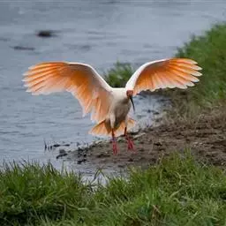 粉红琵鹭:体高87厘米,翼展127厘米,体重1300克,寿命10年。是一种大型涉禽。脚很长,喙长而…