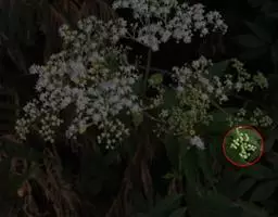 由聚伞花序组成顶生圆锥花序或伞房花序,分枝达5-6级,花序梗密被长粗糙毛或仅二纵列粗糙毛;总苞叶卵状披针形至线状披针形或线形;花萼小,萼齿5,浅波状或浅钝裂状,长0.3-0.5毫米,被短糙毛,有时疏生腺毛;花冠钟形,白色,5深裂,裂片不等形,卵形、卵状长圆形或卵状椭圆形,长(0.75-)1.25-2毫米,宽1.1-1.65(-1.75)毫米,蜜囊顶端的裂片常较大,冠筒常比裂片稍长,长1.5-2.25(-2.6)毫米,宽1.7-2.3毫米,内面有长柔毛,筒基部一侧稍囊肿;雄蕊4,伸出;子房下位,花柱较雄蕊稍短。瘦果倒卵形,与宿存增大苞片贴生;果苞倒卵形、卵形、倒卵状长圆形或椭圆形,有时圆形,长(2.8-)4-5.5(-6.5)毫米,宽(2.5-)4-5.5(-8)毫米,顶端钝圆,不分裂或微3裂,基部楔形或钝,网脉明显,具主脉2条,极少有3条的,下面中部2主脉内有微糙毛。花期8-10月,果期9-11月。