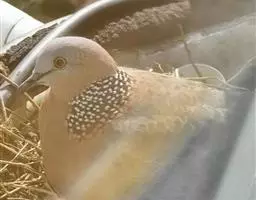 欧斑鸠体长27厘米,是一种体型略小的粉褐色斑鸠。颈侧具多黑白色细纹的斑块,翼覆羽深褐,…