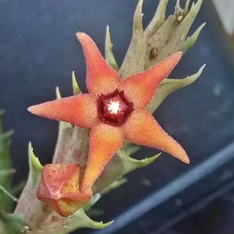 又名摘星花,夹竹桃科羊角拗属常绿蔓状灌木,原产西非刚果等地。本属广布非洲至东南亚,约有40种,中文…