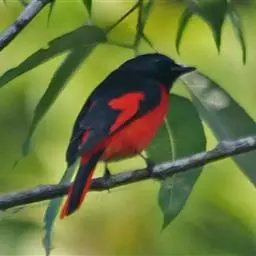 灰喉山椒鸟:共有8个亚种。体长18-22厘米。雄鸟头部和背亮黑色,腰、尾上覆羽和下体朱红色,…