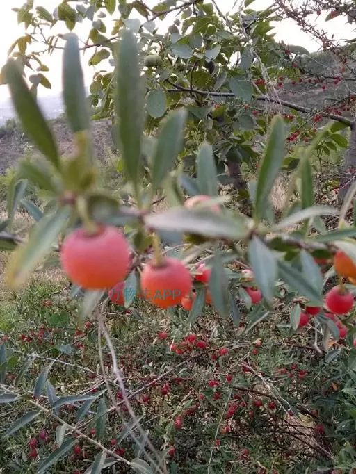 小灌木,高约2米,多分枝;枝条灰绿色或紫褐色,无毛,皮成片状剥落;小枝红褐色,无毛,有稜条;枝刺直立或弯曲,刺长6-10毫米,通常不生叶;冬芽小,卵圆形,先端急尖,紫红色,外面有毛。叶互生,稀丛生,叶片卵状披针形或披针形,极稀带形,长3-6.5厘米,宽6-20毫米,先端急尖、渐尖或尾尖,基部近圆形或宽楔形,全缘或有稀疏锯齿,上面深绿色,叶脉下陷,下面淡绿色,叶脉突起,两面无毛或有少数睫毛;叶柄长5-10毫米,无毛;托叶小,膜质,披针形,先端渐尖,全缘,内面有毛,脱落。