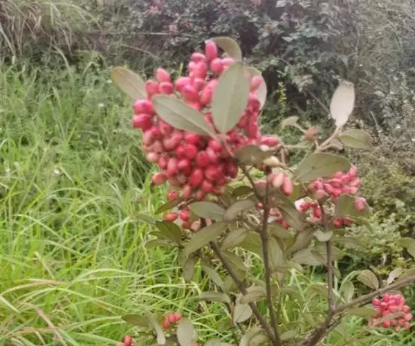 果实红色,椭圆状卵圆形,长7-8毫米;核扁,卵形,长6-8毫米,直径5-6毫米,有3条浅腹沟和2条浅背沟。花期5-6月,果熟期9-11月。