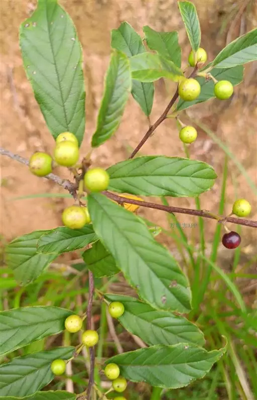花数个或10余个密集成腋生聚伞花序,总花梗长4-10,稀15毫米,被柔毛,花梗长2-4毫米,被短柔毛;萼片三角形与萼管等长,外面有疏微毛;花瓣近圆形,顶端2裂;雄蕊与花瓣等长而短于萼片;子房球形,无毛,3室,每室具1胚珠,花柱不分裂,柱头不明显。核果球形或倒卵状球形,绿色或红色,成熟时黑色或紫黑色,长5-6毫米,直径6-7毫米,果梗长3-6毫米,无或有疏短毛,具3分核,各有种子1个;种子无沟。花期5-8月,果期8-10月。