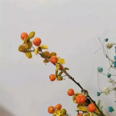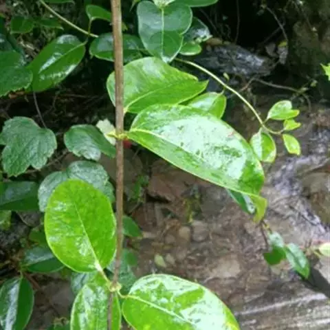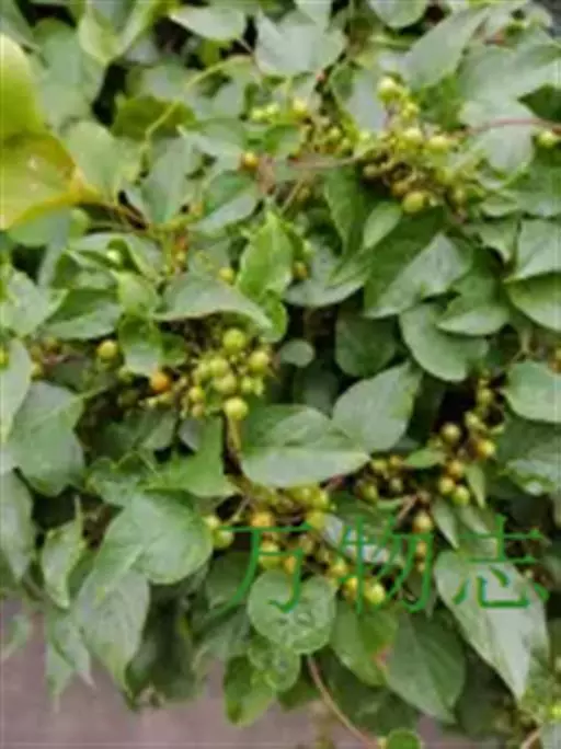 刺苞南蛇藤(学名:Celastrus flagellaris Rupr.):卫矛科南蛇藤属藤状灌木。小枝光滑,叶阔椭圆形或卵状阔椭圆形,稀倒卵椭圆圈,叶主脉上具细疏短毛或近无毛;叶柄细长,聚伞花序腋生,花序近无梗,雄花萼片长方形,花瓣长方窄倒卵形,花盘浅杯状,顶端近平截,子房球状。蒴果球状,种子近椭圆状,4-5月开花,8-9月结果。