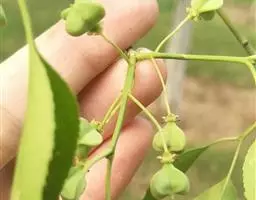 播种育苗以春播为好,在9-10月采收种子,阴干去掉外种皮,装在透气的袋子里置于阴凉干燥处保存。2月中、下旬进行层积处理,再用45℃温水浸泡,充分搅拌,自然冷却,每天换清水2次,2天后把种子捞出、控干,用0.5%高锰酸钾液浸泡1小时,捞出用清水洗净、控干。按种子:沙子为1:3的体积比把种子与细沙混合,沙子含水量保持在60%(捏能成团落地散团)为宜,放在。-5℃环境中进行沙藏,处理时间为45天左右。播种前15天将经沙藏处理的种子放在室内或背风向阳处,保持10-15℃,每天中午翻动l-2次,如果萌动较慢,可用塑料膜覆盖保温保湿。当种子有1/3以上“露白”时,即可播种。采用床作或垄作,条播为好,要细致整地,按每平方米400-500粒的密度混沙播种,覆土1厘米。为了提高种子发芽速度,在播床上覆盖地膜,待出苗后揭去地膜,3-4周出齐苗,及时拔草、浇水,施3次液肥,秋季以施磷、钾肥为主。上冻前要浇防冻水,埋土5厘米越冬,第二年春季即可起苗移栽或应用绿化。