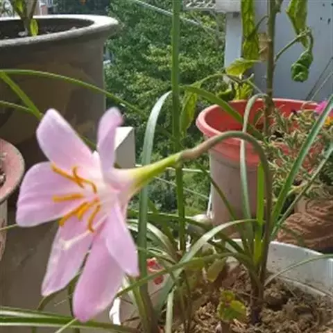 长筒石蒜草本,地生。鳞茎卵球形;叶披针形;伞形花序,有花5-7朵,花白色;花被裂片腹面稍有淡红色条纹,…