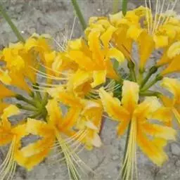 中国石蒜草本,地生。植株无毛,叶带状,顶端圆;伞形花序,花黄色;花被裂片背面具淡黄色中肋,倒披针形…