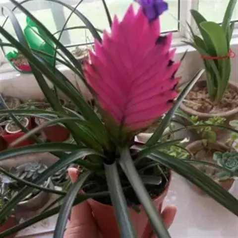 3、施肥:凤梨铁兰对肥料的要求不高,主要靠自我吸收空气中的水分及营养成分生长。但要使其生长旺盛,尤其能够正常开花,则应当在冬季及盛夏,每15天左右放置于自制肥水中浸泡。在春末夏初开花期间,应当增加磷肥用量。